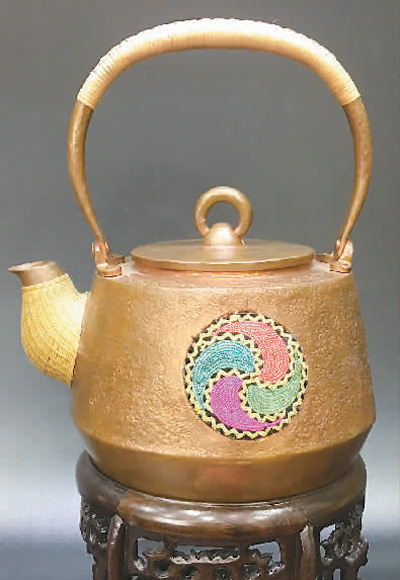 何满制作的竹编紫铜一体壶