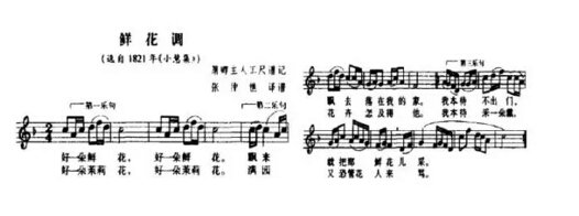 1837年,《茉莉花》的曲谱见于木刻本的《小慧集》中,原名为《鲜花调》。这是中国 早可见的《茉莉花》曲谱,后来被江苏明清俗曲专家张仲樵翻译成简谱。